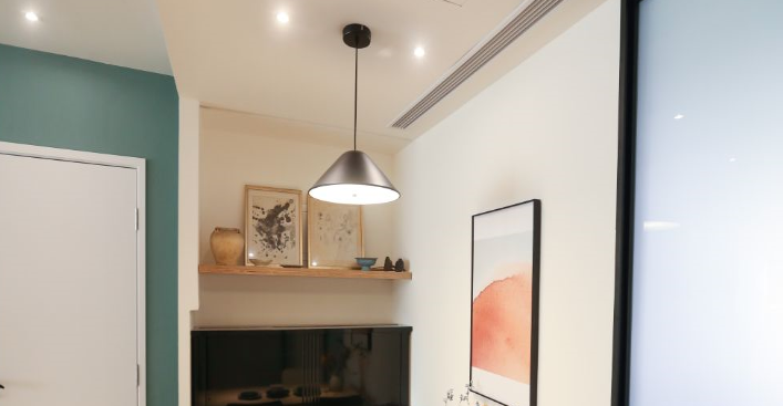 設計師通過多番現場勘察,最終主臥、次臥、客餐廳都決定選用大金超薄風管式空調,超薄風管機機身很小巧,安裝很緊湊,對于一些層高不是很高的戶型也很適合。